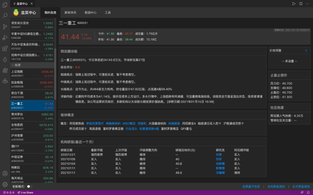1. 韭菜盒子:VSCode 里也可以看股票 & 基金实时数据的投资插件