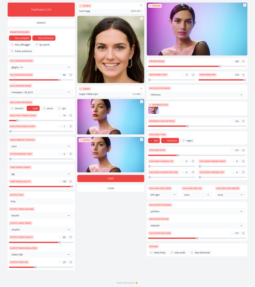 这个开源项目叫做 FaceFusion,是一个专注于面部交换和增强的开源项目,它提供了一些先进的功能和工具,以便于用户在处理面部图像时能够得到更好的结果。