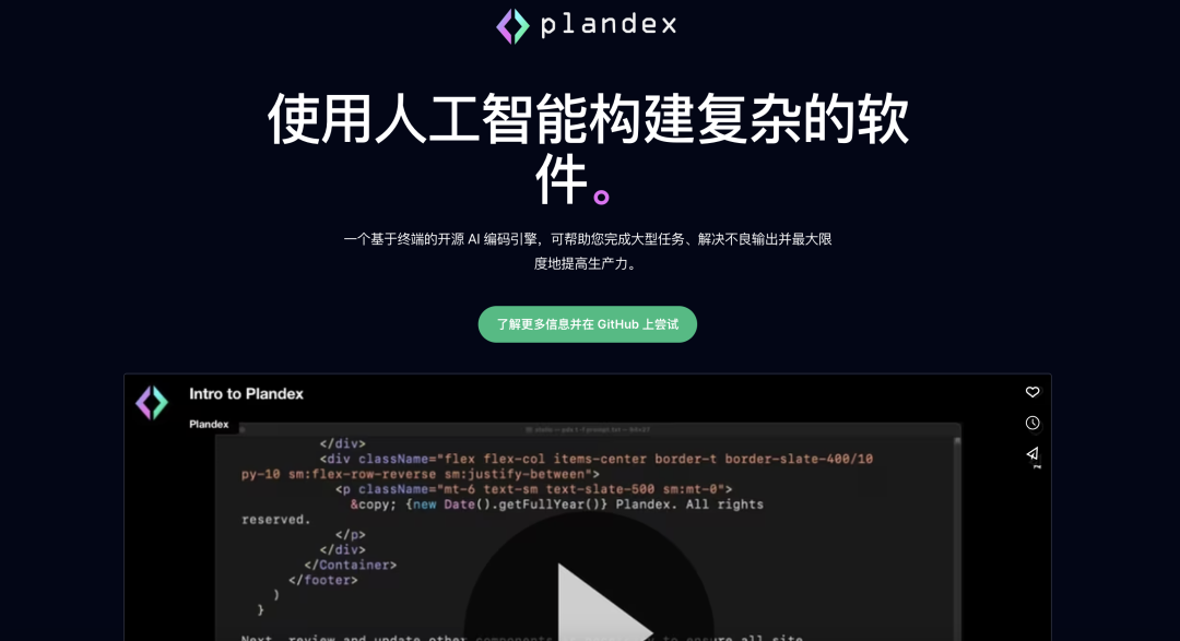 Plandex是一个开源的、基于终端的AI编程引擎,专门设计用于处理复杂任务。它利用长期运行的代理(agents)来完成跨越多个文件并需要多个步骤的任务。