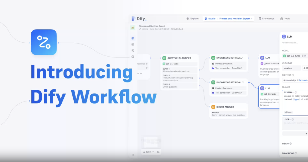 Dify 是一个易用的 LLMOps 平台,旨在让更多人可以创建可持续运营的原生 AI 应用,目前已经获得了 21.4K 的 Star。