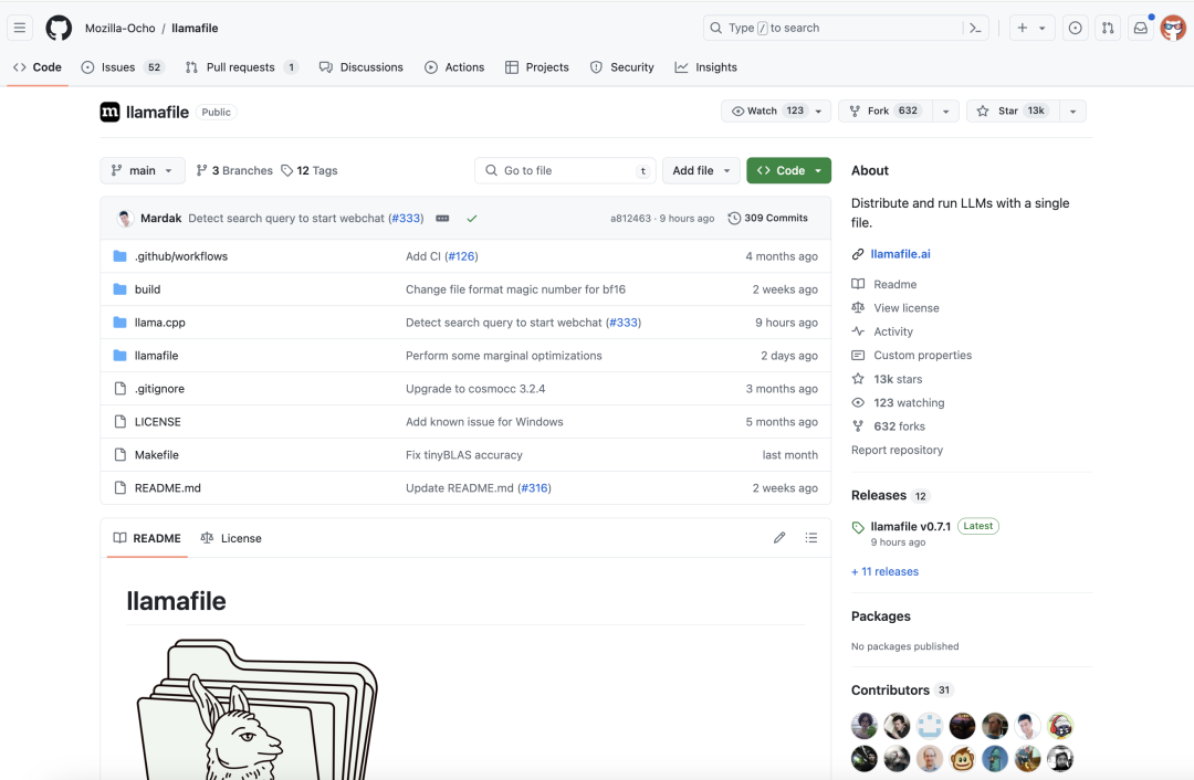 开源地址:https://github.com/Mozilla-Ocho/llamafile