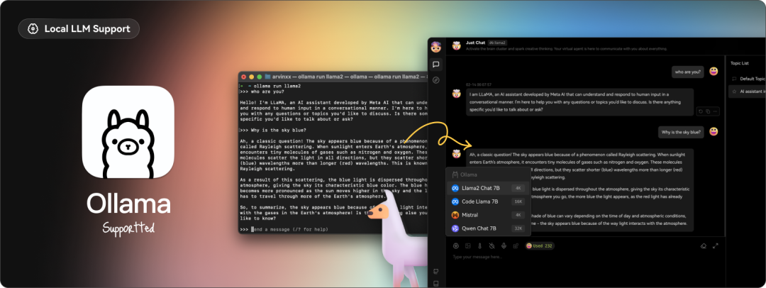 本地 LLMs:您可以使用 Ollama 利用本地 LLMs,如 Llama3 和 Mixtral。