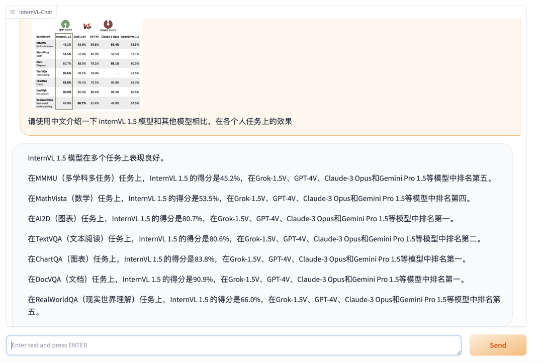 InternVL 由 OpenGVLab 开发,是一个开源的多模态对话模型,其性能接近商业化的 GPT-4V 模型。