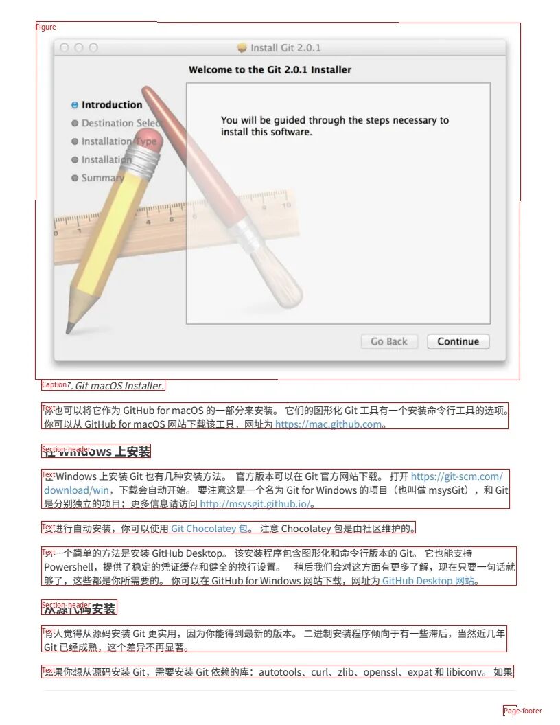 布局分析:可以检测文档中的表格、图像、标题等元素。