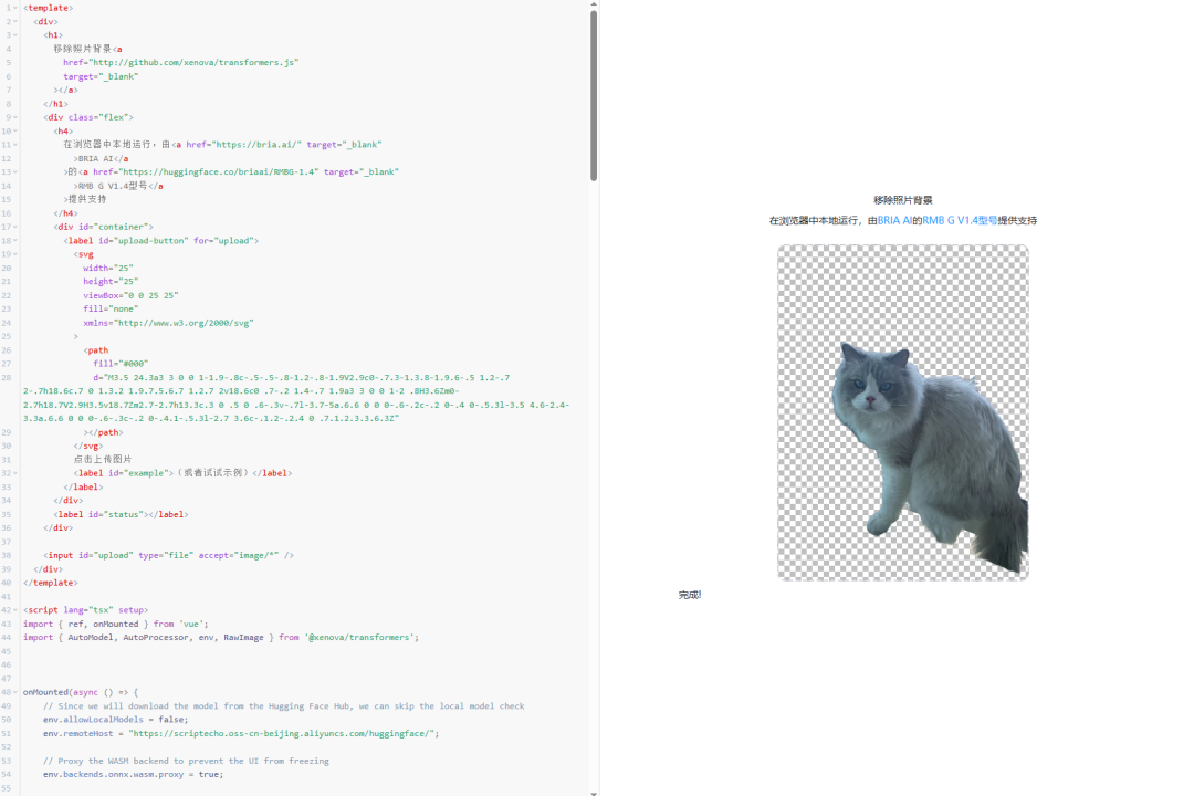 transformers.js 是一个与 Hugging Face 的 transformers Python 库功能相当的 JavaScript 库。