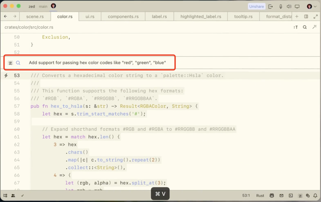 使用 AI 生成代码可节省时间和按键次数。Zed 开箱即用,支持 GitHub Copilot,您可以使用 GPT-4 生成或重构代码。