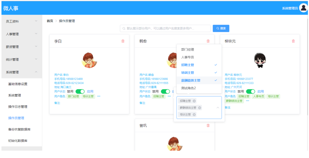 用户管理:提供用户的相关配置,新增用户后,默认密码为123456