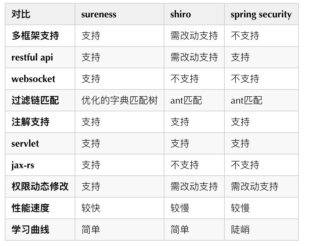 深度绑定spring性能较慢等。还有学习曲线陡峭的spring security,或多或少都不是我们的理想型。