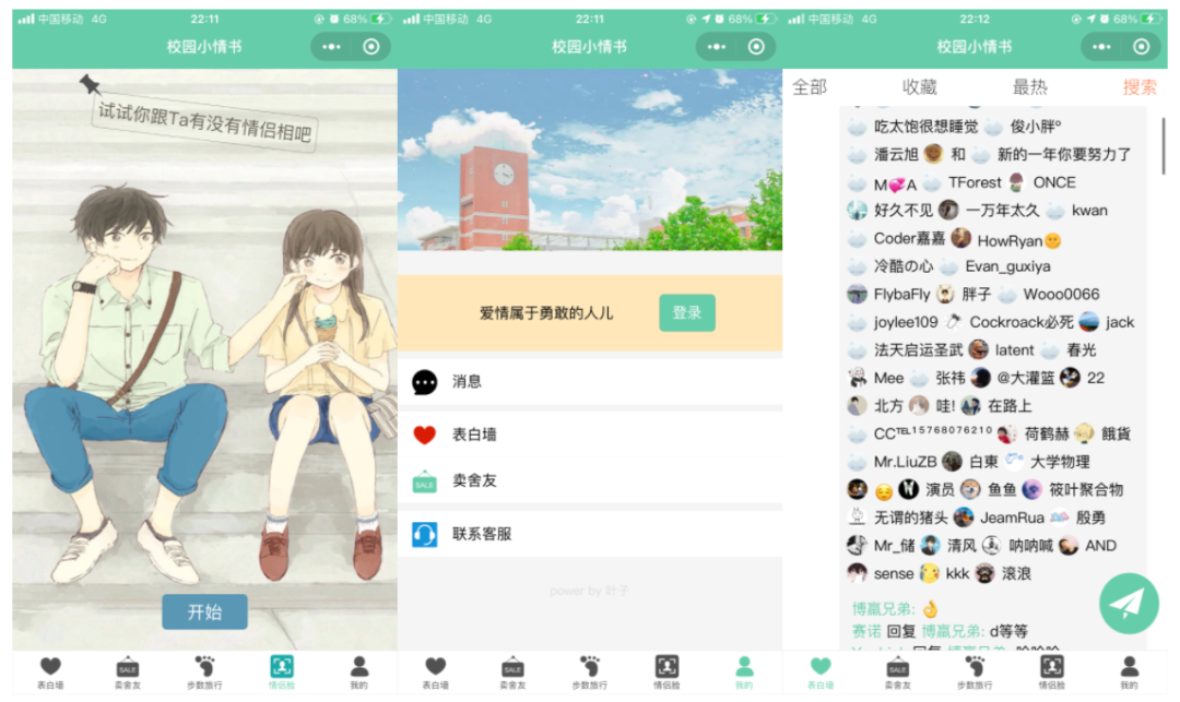 第一个项目是校园小情书的微信小程序,该项目功能包括表白墙、树洞、校园论坛。