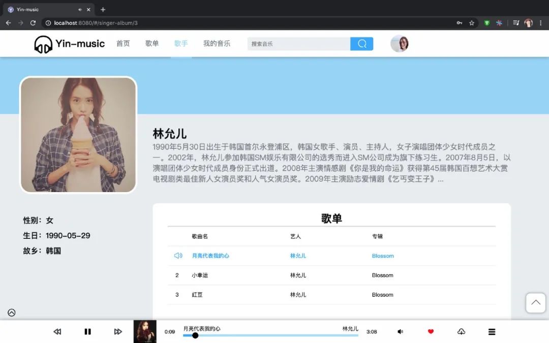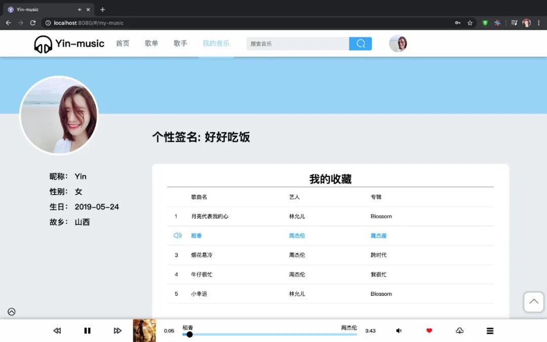 这一块可以其实可以爬取网上的音乐信息,做一个自己的数据库或者调用开放的 Api。