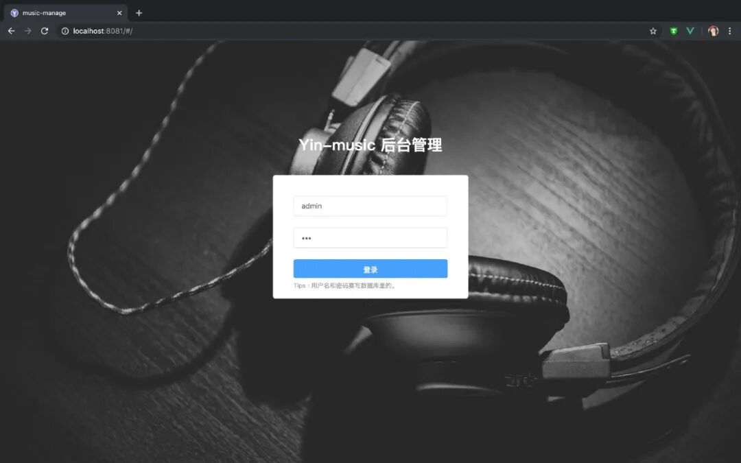 启动后台:进入 music-manage 文件夹,运行下面命令启动后台管理项目