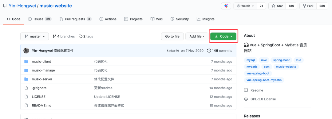 今天推荐一个音乐网站项目,前端技术栈基于 Vue.js 开发前台后台,后端基于Spring Boot + MyBatis ,数据库使用的是 MySQL。