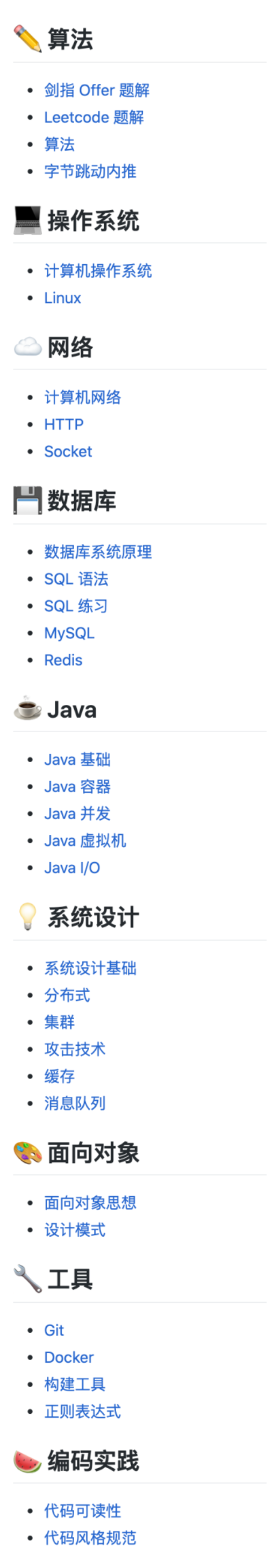 这个 repo 是技术面试必备基础知识,包括算法、计算机操作系统、计算机网络、系统设计等等。