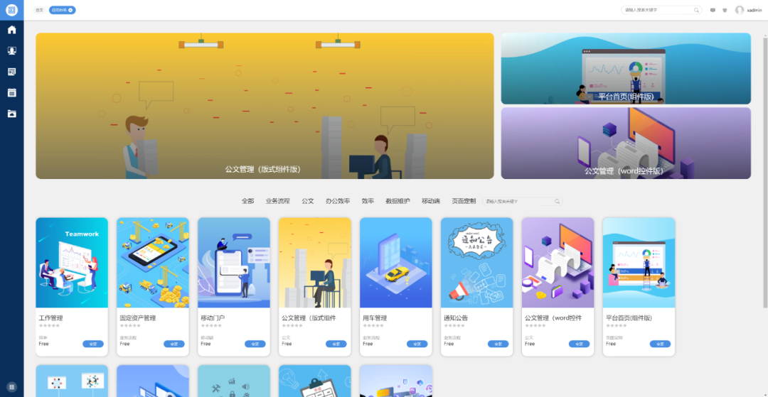 除此之外,平台还提供了完整的用户管理,权限管理,流程和信息管理体系,并且提供了大量的开发组件和开箱即用的应用,可以大幅度减化企业信息化建设成本和业务应用开发难度。