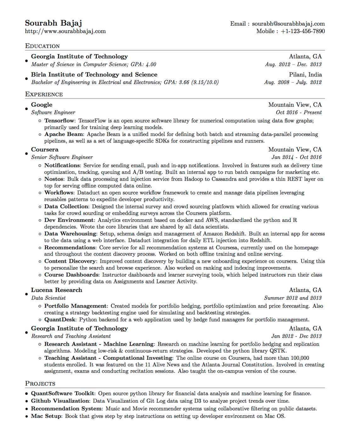 所有搞了一个面向程序员的单页单栏简历模板。使用自定义 Latex 命令来提供一致的格式,简历中主要分为三个主要部分:教育经历、工作经验和参与项目。
