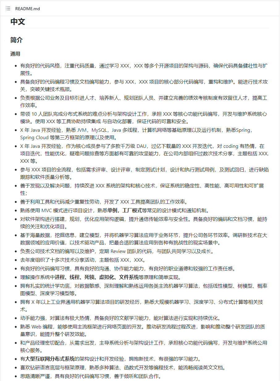 有时候,我们不是没有一个好模板,而是不知道怎样用专业的话术描述自己的经历,有了这个 GitHub 项目就不用担心了。