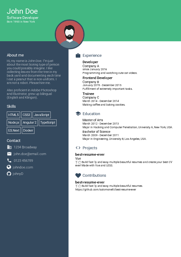 使用 Vue 和 Less 快速轻松地制作多份精美简历!使用也相当简单: