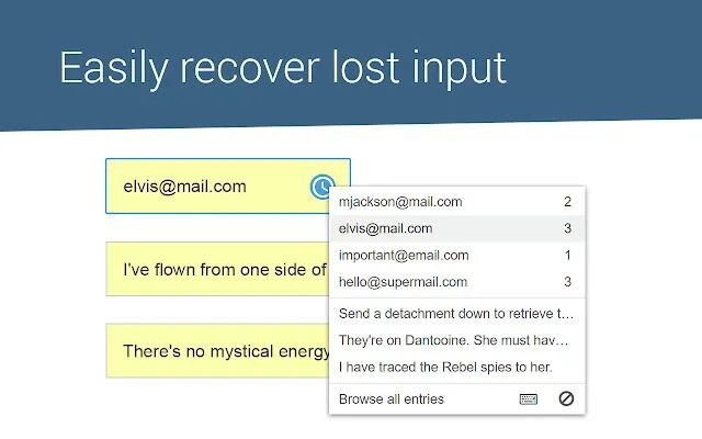 自动保存,无处不在。轻松恢复丢失的表单输入!在键入时自动保存文本,并允许您在丢失时轻松恢复输入数据。
