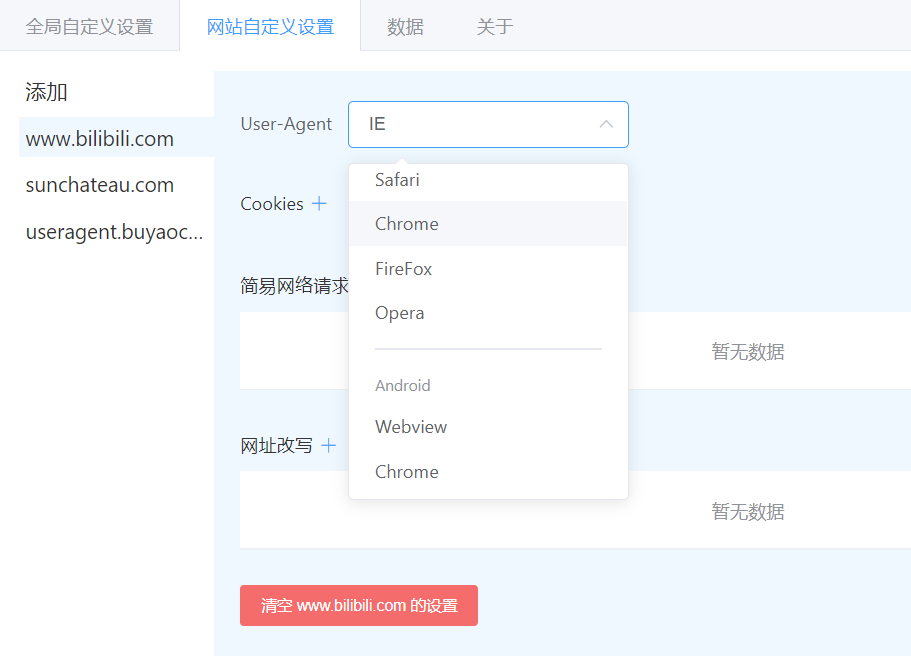 simple-extension 让每个网站都可以保存/切换Cookies、切换User-Agent,简单地监听网络请求。