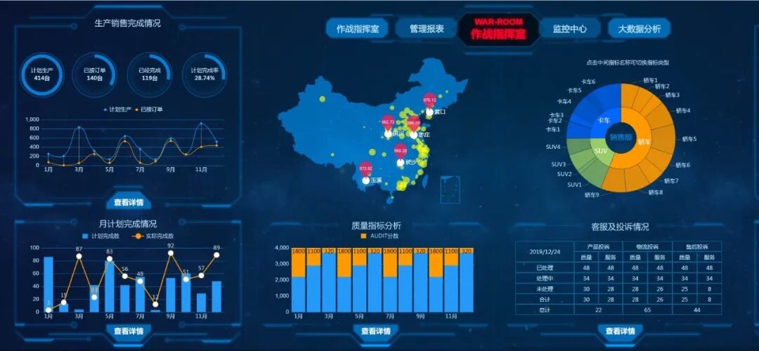 雷达图、折线图、柱状图、饼状图、漏斗图