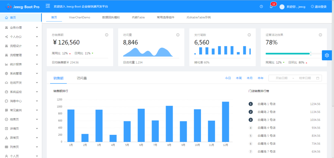 JeecgBoot 是一款基于代码生成器的低代码平台!前后端分离架构 SpringBoot2.x,SpringCloud,Ant Design&Vue,Mybatis-plus,Shiro,JWT,支持微服务。强大的代码生成器让前后端代码一键生成,实现低代码开发!