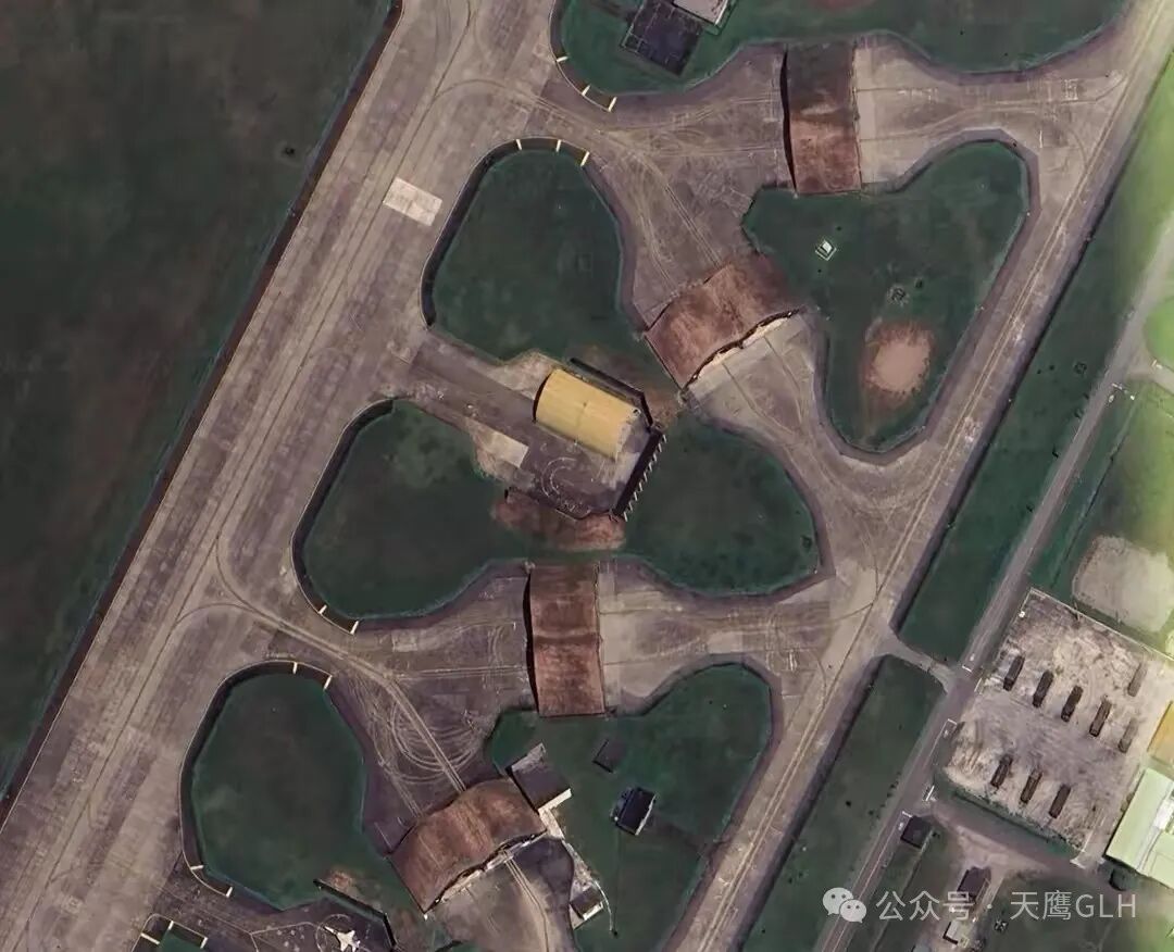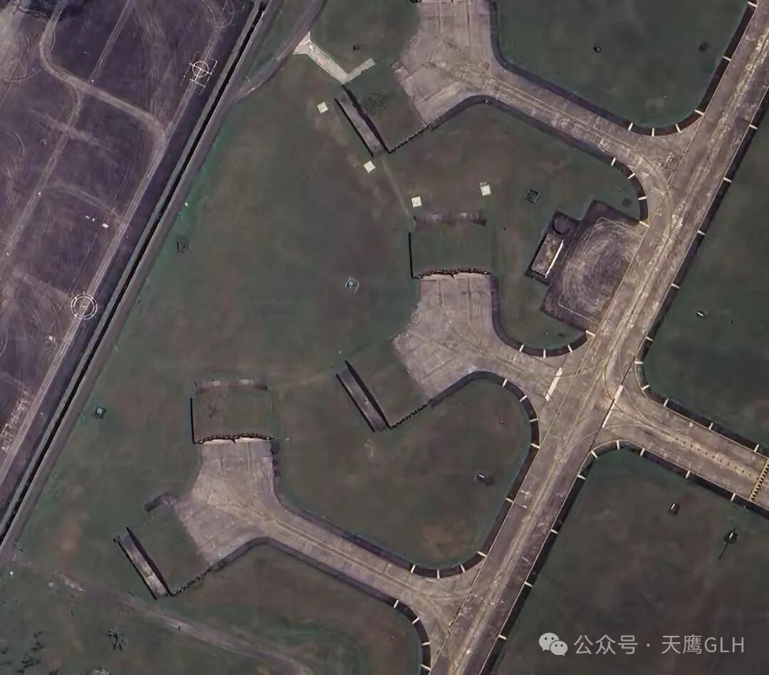 花莲基地跑道两侧共有52个钢筋混凝土机堡,且布置较为分散,多为两两一组交叉布置,里面停放的战斗机多为F16V,面对这种机堡,最好的攻击方式是使用钻地弹,可以有效击穿,但是也需要大量的弹药才能全部摧毁。