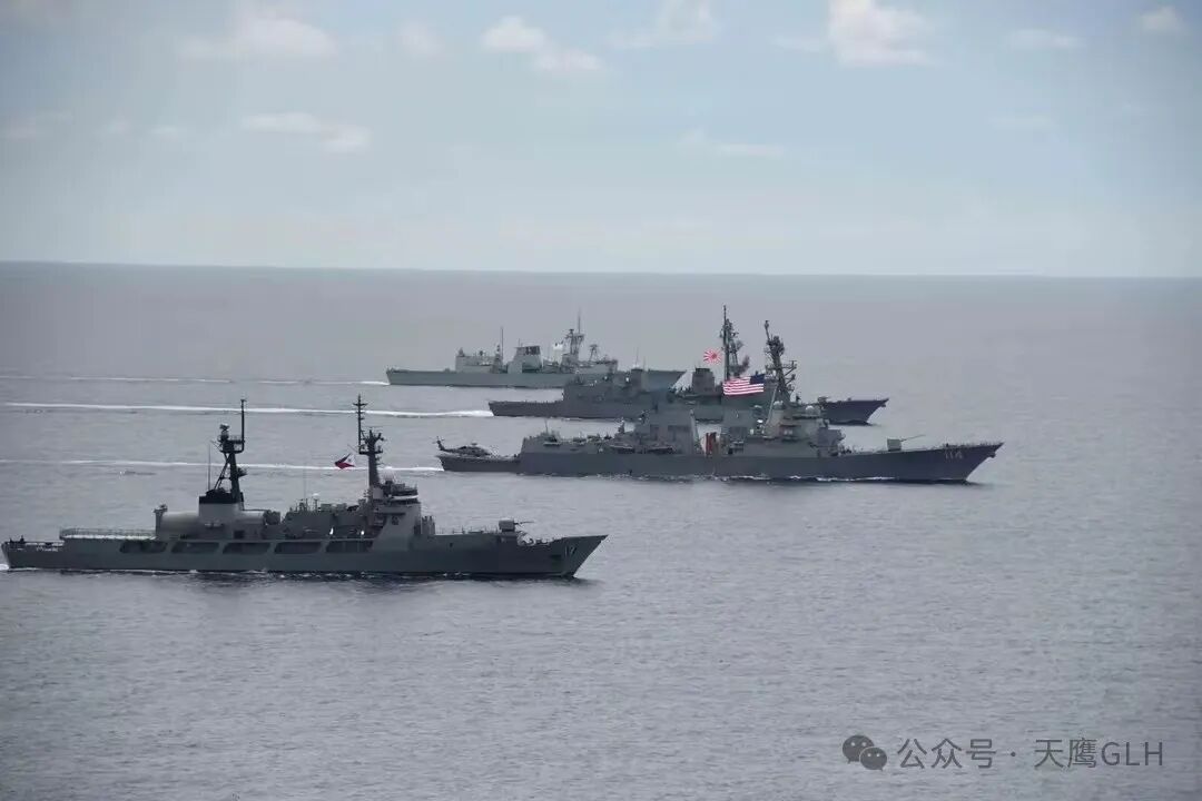 现在南海局势紧张,美国在背后要火上浇油,为了给菲律宾打气,美国拉上盟友在南海大搞军演习,最新一次为美国海军、日本海上自卫队、加拿大海军、菲律宾海军,一共四国海上力量在南海进行了联合演习,时间为:6月16日至17日。非常“凑巧”,就是在中国海警3号令正式实施的第二天开始,菲律宾补给船闯仁爱礁的时候。