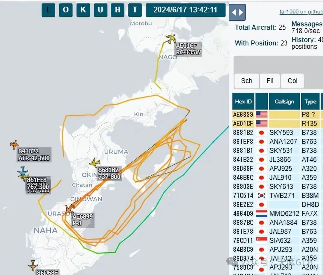 只要查一下,根据世界航行航线数据,在6月17日,琉球群岛上空,出现美军鸡飞狗跳一幕!美军出动了多架反潜侦察机,无人机,预警机进入东海,黄海,菲律宾海。可以查到的,至少有1架P-8A反潜机,2架RC-135战略侦察机和1架MQ-4战略侦察无人机等,都是从琉球群岛,普天间和嘉手纳军事基地起飞,在琉球群岛,东海上空绕圈,之后飞往了各地。但是没有显现与南海局势有什么特别的。