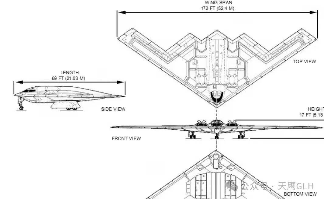 为了保证自身的隐蔽性,它创造性的采用了飞翼式气动布局,这种结构布局能够很大程度上减少雷达反射。