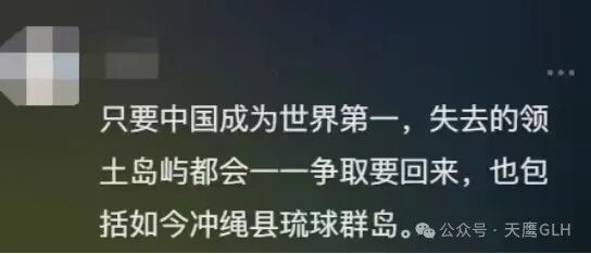 “只要中国成为世界第一,失去的领土岛屿都会一一争取要回来,也包括如今冲绳县琉球群岛。”