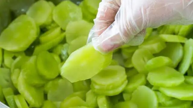 03晒干的过程中,要时刻注意天气变化,以防莴笋片受潮发霉。大约两到三天后,莴笋片就会变得又干又脆,颜色也会由翠绿变为深绿。