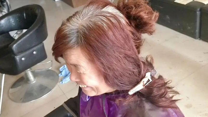 张阿姨坐在理发店的镜子前,看着自己日渐花白的头发,轻轻叹了口气。