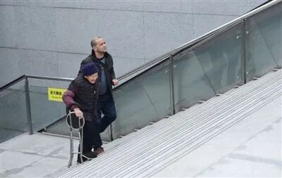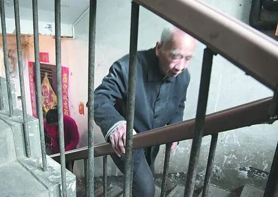 每次爬楼梯,李伯都会扶着栏杆,一步一步地往上挪。