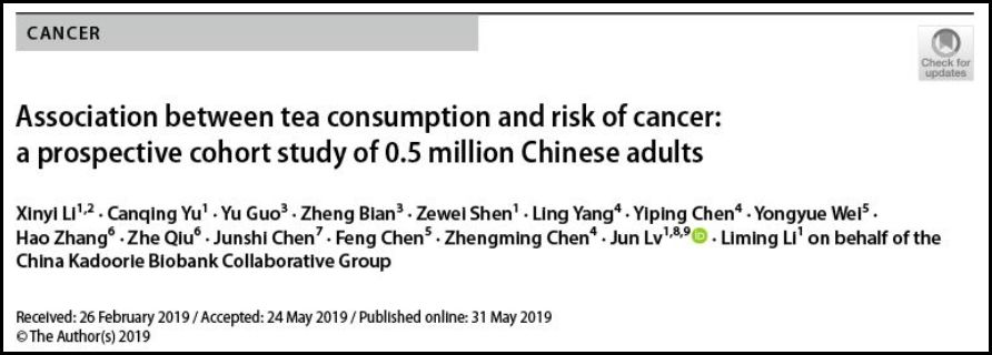 经进一步分析发现,当排除了烟酒对结果的影响后,喝茶与癌症风险之间的关系明显减弱。