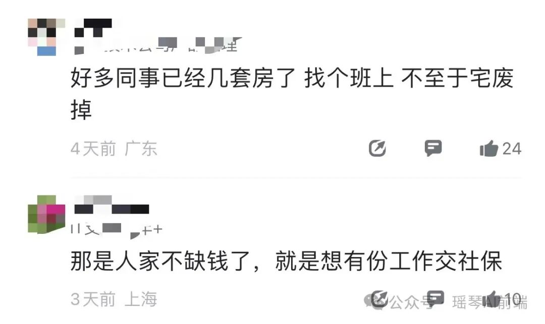 这篇帖子也引发了很多职场人的讨论,有网友笑评:可能人家早已实现财务自由,就是找份工作交社保。
