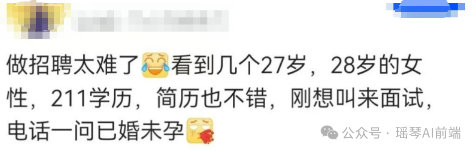 该HR表示,在面对 27、28 岁、拥有 211 学历且简历出众的女性求职者时,一旦得知对方已婚未孕,就没有下文了,因为即使面试通过,公司也不会同意,这引发了很多人对于这类女性群体就职的担忧和讨论。