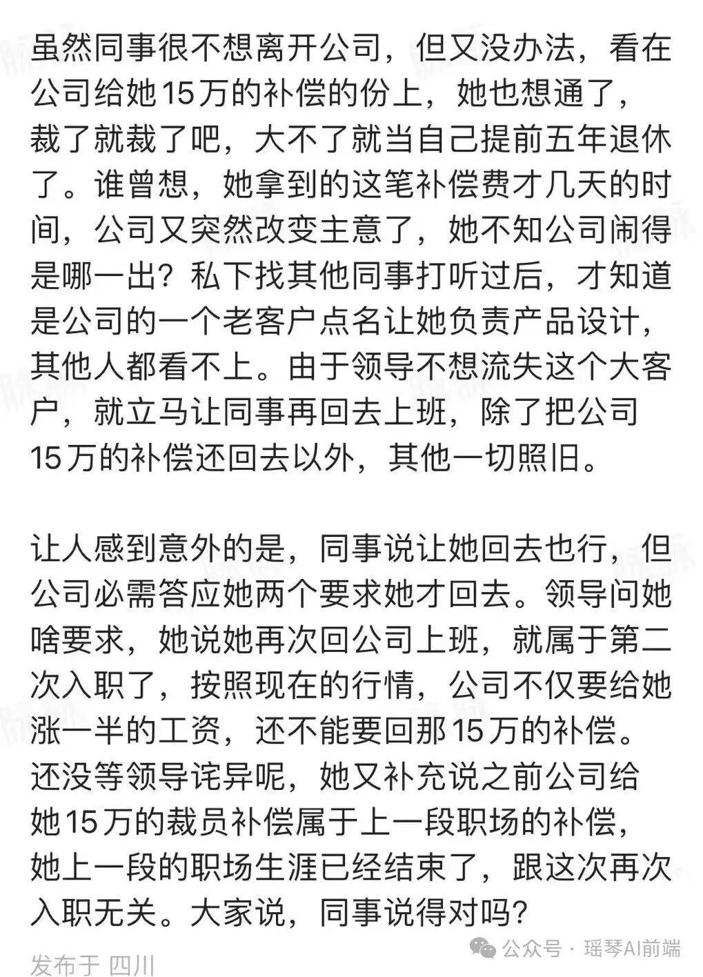 好马不吃回头草,提升自身实力,增加自己的筹码才是重点,就像这位女同事一样,客户点名让她做产品设计,公司才不得不请她回来。