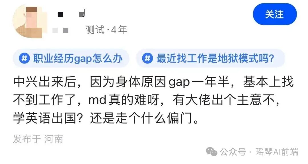 关于 gap,瑶琴或许能有些发言权,在 23 年的金三银四时段,瑶琴因为各种原因,选择了裸辞。