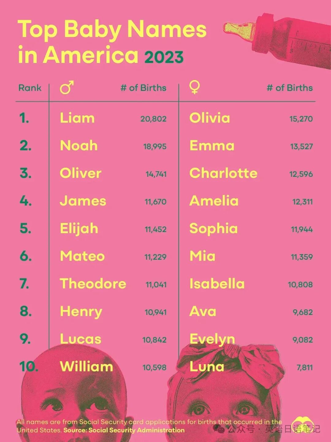 Original Titke 原标题Charted: America’s Most Popular Baby Names in 2023