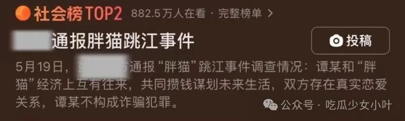 事情一开始胖猫姐姐声称因为谭竹榨干了弟弟两天挣得51万才导致其轻生的,然而根据这么多天的调查以来,事情并非网上传的那样,胖猫跟谭竹属于正常恋爱,据不完全统计,两人交往两年多来,胖猫一共转给谭竹79.9万,而且还有一部分在两人共同攒钱的账户中,最终合计一下,胖猫一共支出72.4万。反观谭竹,她也并非一毛不拔,在恋爱期间合计转出53.4万,如果加上开花店的钱,那就是69.9万,而且胖猫出事后,谭竹也补足了其中的差价。