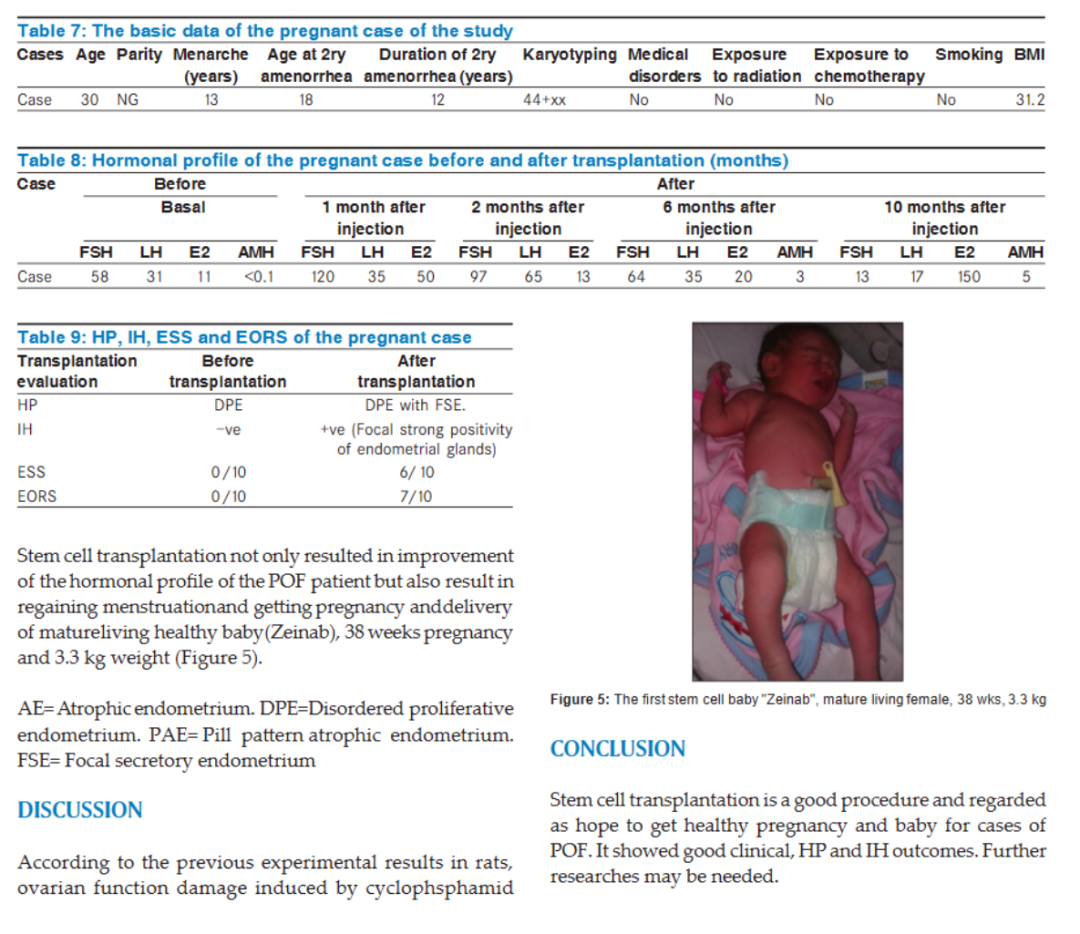 世界上第一个通过干细胞治疗卵巢早衰后诞生的宝宝“Zeinab”证明了干细胞治疗在恢复卵巢功能方面的有效性。