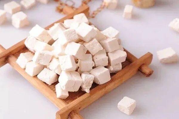 3、补水透亮:茯苓所含有效成分,能减轻汞中毒导致的面部色素沉着,有补水透亮的功效,适用于皮肤暗黄、痤疮、色斑暗沉的女性。