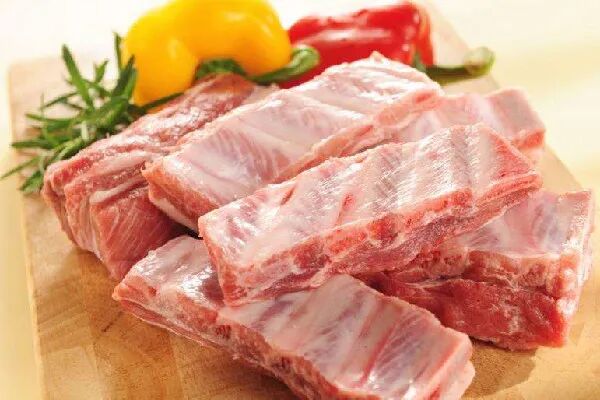 肋排:肋排是胸腔的片状排骨,肉比较薄,也比较瘦,吃起来口感较嫩,但是肋排的骨头比较粗。经常吃的红烧排骨,用的就是肋排。