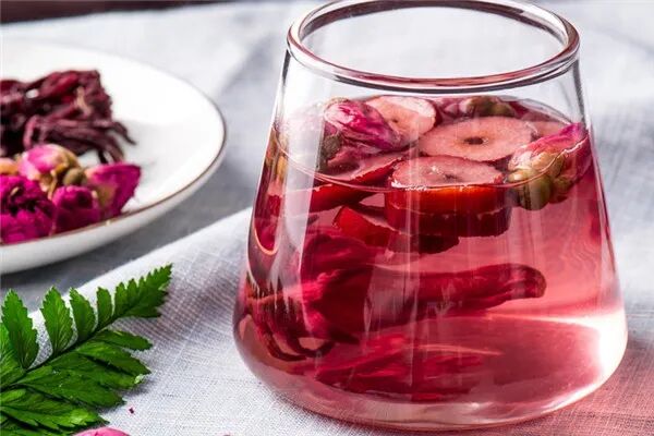 洛神花茶中含有丰富的蛋白质,具有养颜美容的功效。洛神花茶是由洛神花泡制而成的,属花茶类,也被称为烙花神、洛花神。洛神花在气温10℃时会停止生长,5℃时会枯萎,在温带地区较难种植。洛神花含味酸、维生素C、接骨木三糖苷、柠檬酸等营养成分。具有健胃消食、降血压、消斑美容等功效。