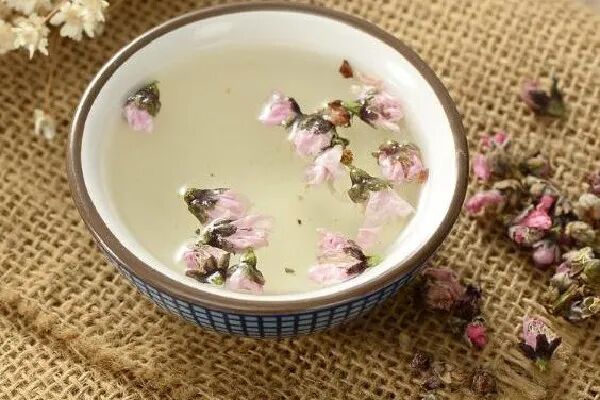 桃花茶是一种以桃花为原料制作的花茶,具有清香、甜润、微带苦涩的口感。据说桃花茶有助于缓解焦虑和压力,促进睡眠,增强免疫力,改善肝脏功能等作用。
