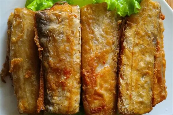 在盆中放适量面粉,加水稀释,加鸡蛋,放盐,搅拌均匀。把带鱼放进鸡蛋面粉里浸泡,葱切段,姜切片备用。然后平底锅内放入适量的油,油好后把裹好的带鱼放进平底锅煎至两面金黄。最后倒入热水加少许酱油、花椒等调料盖锅盖闷三分钟。