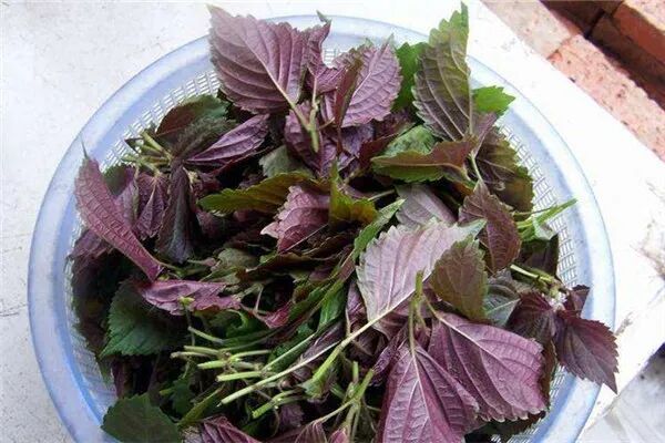 枝叶茂盛时收割,摊在地上或悬于通风处阴干,干后将叶摘下即可。叶片多皱缩卷曲,完整者展平后呈卵圆形,先端长尖或急尖,基部圆形或宽楔形,边缘具圆锯齿,两面紫色或上面绿色,下表面有多数凹点状腺鳞,叶两面绿色,暗绿色或带紫色协定缘具圆锯齿。叶柄紫色或紫绿色,质脆。嫩枝紫绿色,断面中部有髓,气清香,味微辛。均以叶完整,色紫、香气浓者为佳。