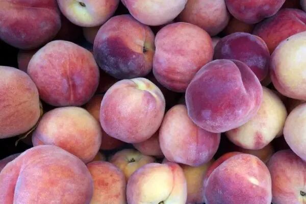 成熟的水蜜桃略呈球形,果实颜色为粉色,表面带有细小的绒毛,果肉为黄白色,口感酸甜。一个桃子一般有一百克到二百克左右,大的约为三百多克左右。