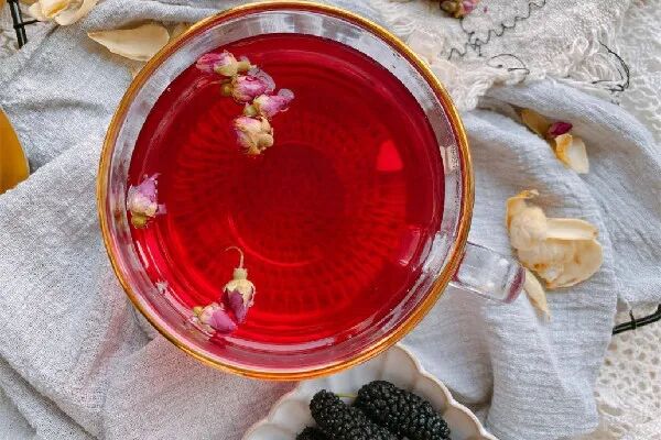 2、补血:桑葚茶中的铁元素和维生素C含量较高,这两种元素和血红细胞造血有密切关联,因此桑葚茶是补血佳品。