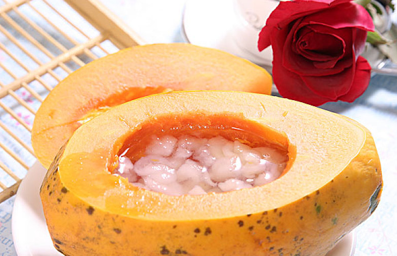 番木瓜口感香甜、成熟的果实果肉软糯可口,汁水丰富,营养价值比较高。有人说木瓜中维生素C的含量是苹果的48倍,足以证明其维C含量之高。它还含有蛋白质、多种胡萝卜素以及大量果胶,能为人体提供营养。
